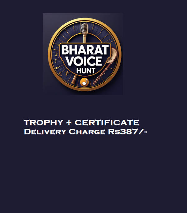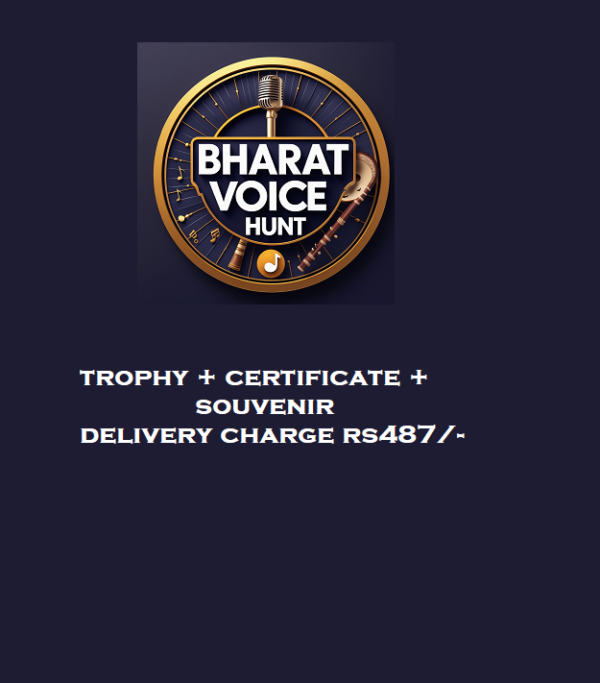 As a winner of our Online Singing Competition – Bharat Voice Hunt, you’ve earned the spotlight! To honor your incredible achievement, we’ve prepared an exclusive Trophy and Certificate just for you. Here’s what makes these mementos special: