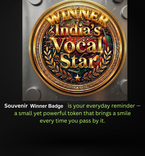 But this Premium Achievement Winner Badge is your everyday reminder — a small (2 inch diameter) yet powerful token that brings a smile every time you pass by it. It’s perfect for your fridge, study corner, or music space — silently celebrating your talent each day.