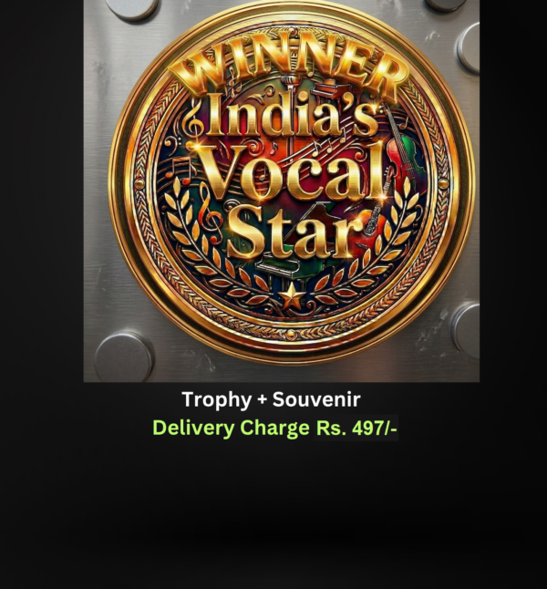Congratulations on your exceptional performance in the Online Singing Competition – India’s Vocal Star Trophy ! To honor your achievement, we’ve created a specially designed Trophy and Certificate that reflects your passion and dedication to music.